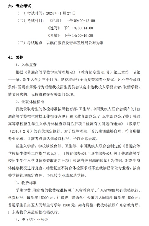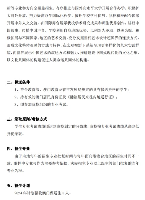 广州美术学院2024年中国普通高等学校联合招收澳门保送生简章
