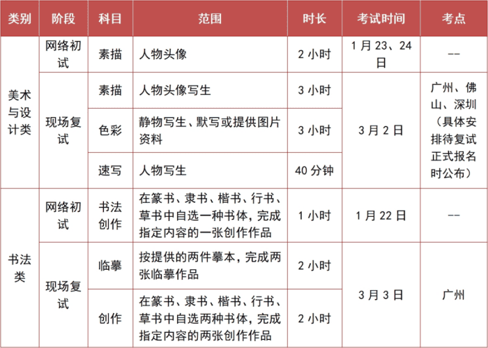 (1)考生选择“美术与设计类”“书法类”其一进行报考,不能兼报;